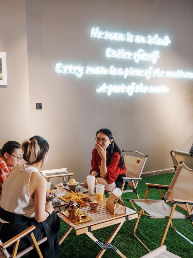 户外椅和豆袋沙发摆在草坪上,这是国内最网红的露营野奢风。明明吹着空调,但还是有几分户外电影的自在惬意感。躺在豆袋沙发里一边欣赏电影,一起和大家讨论剧情,碰上几个志同道合影的同好,岂不美哉?扫文末二维码入群每日群里会发当天放映电影,挑到你喜欢的电影那天。