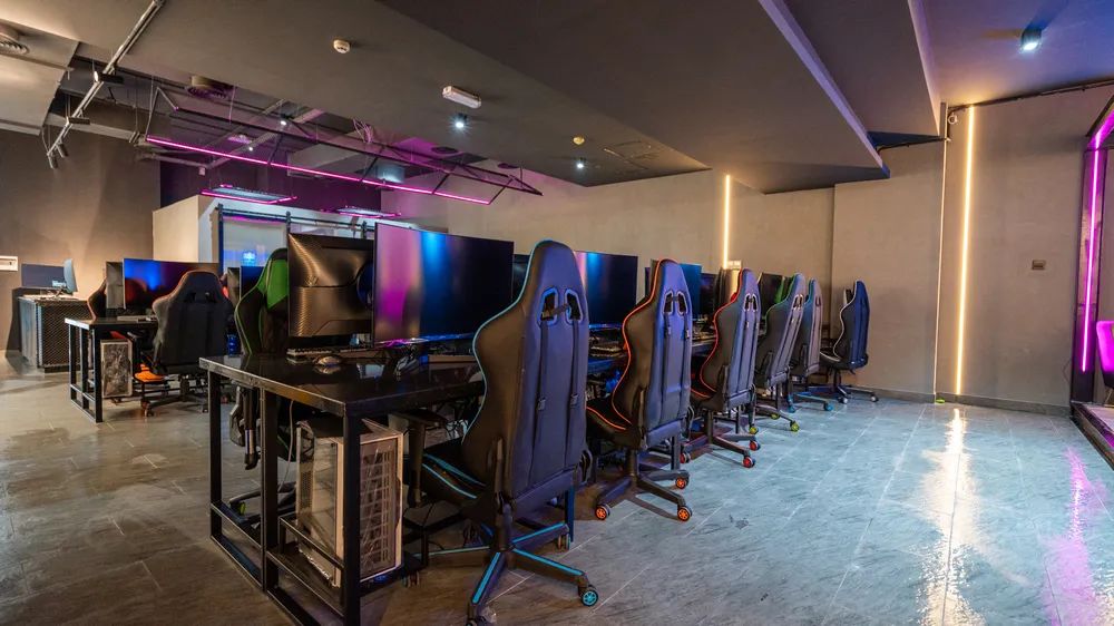 这可能是国际城目前环境最好的网吧,大厅的面积很阔,顶也吊的很高,不会有常见网吧的拥挤憋屈。整个大厅用灯带打造出一种赛博朋克风,置身于此仿佛已经穿越到了游戏的时空,在网络中运筹帷幄,边上还有私密性更强的包间,更好与好友一同组队交流!