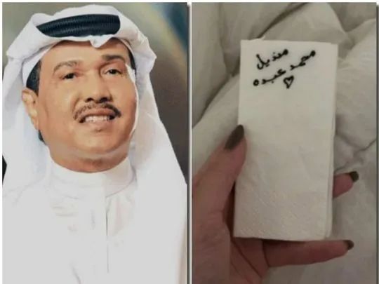 这位沙特歌手在纸巾上写道:“这是穆罕默德·阿卜杜的手帕”。