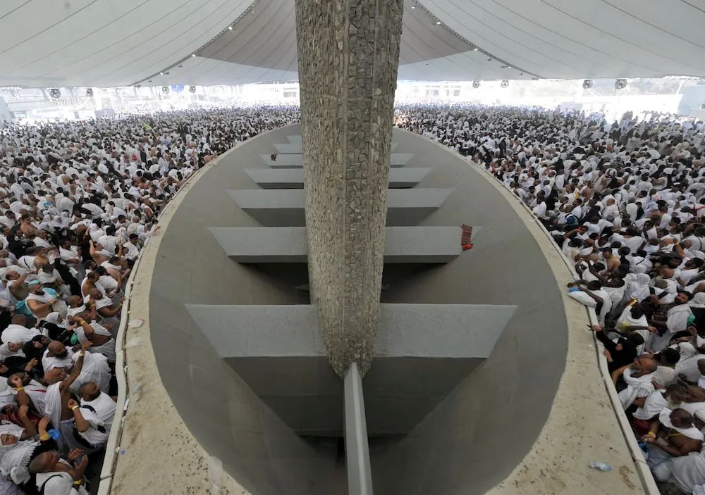 说到这,也许你对朝觐踩踏的第一反应是拥挤的人群在麦加大清真寺(又称“禁寺”)内绕着天房(“克尔白”)逆时针转圈时,突然因为某种原因引发了巨大的混乱,从而导致悲剧的发生。但其实近几十年,踩踏事故均是发生在距离麦加7公里的郊区、被称为“帐篷城”的米纳(Mina),并且几乎都与朝觐的一个重要仪式“投石驱魔”(stoning of the Devil)有关。