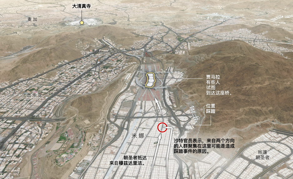 首先,沙特政府只关注改造桥梁和交通网络,确实做到了可以容纳更多的人,但却疏忽了对激增的人群进行有效管控,以及如何让庞大的人群从一个区域流动向另一个区域——尤其是朝觐者来自五湖四海,彼此之间数量庞大又语言不通,很难做到准确定位和管理。