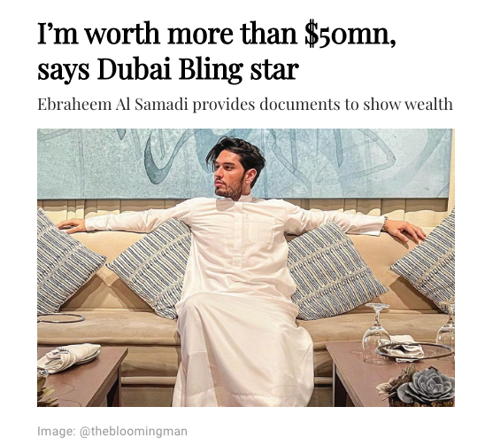 为了与其他假富豪区别开,片中的一位角色的公关团队还特意给《Arabian Business》发验证文件,以证明其身家真的有5000万美元。(他急了~他急了~)