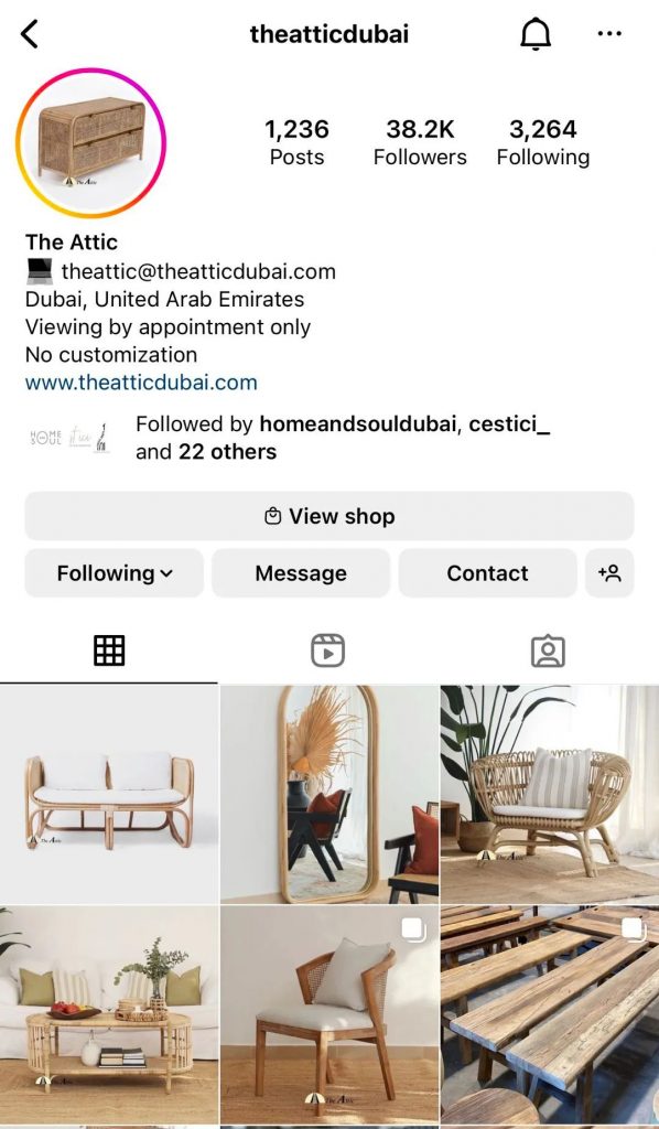 The Attic Dubai我只去过一次,也在Al Quoz的一个大仓库里,没有什么陈列和服务,更多的是像做To B生意,如果要过去线下店挑选购买,还需要提前打电话预约。从价格上来说,同样设计的椅子比Wood Culture要便宜20%左右,只是款式选择并不是太多,不过喜欢原木藤编风格家具的朋友们还是值得过去一趟的。