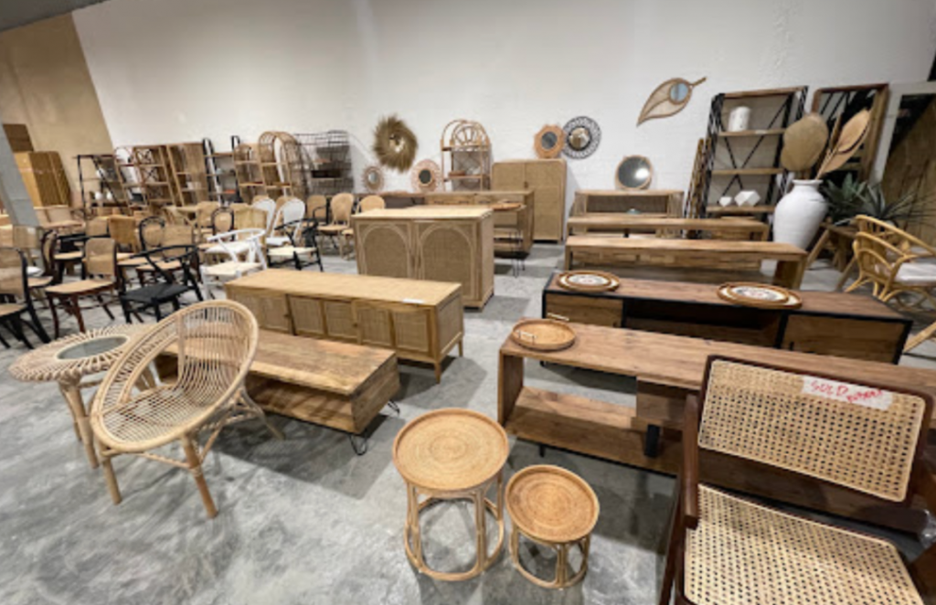 接下来这两家是以原木藤编风格为主的,这两家店大部分家具都是从印尼进口过来的,很多椅子柜子的设计都是现在流行的侘寂风。