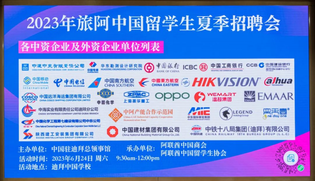 6月24日,2023年旅阿中国留学生夏季招聘会于迪拜中国学校顺利举行。本次活动由中国驻迪拜总领馆主办,阿联酋中国商会和阿联酋中国留学生协会承办,这也是迪拜首次举办面向中国留学生的招聘会。