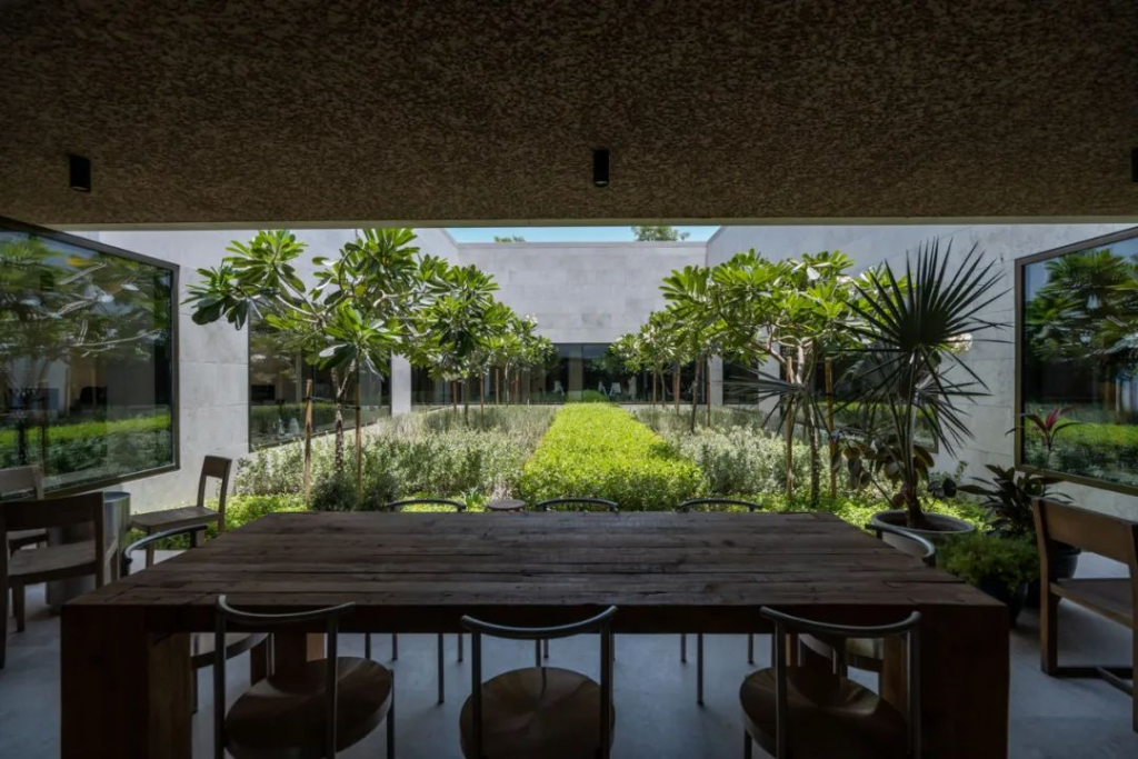 在植物设计方面,亚伯拉罕之家的植被覆盖并不茂密,但排列组合上却非常精妙,结合简约美学的建筑设计,给人一种简单却又和谐的美感。