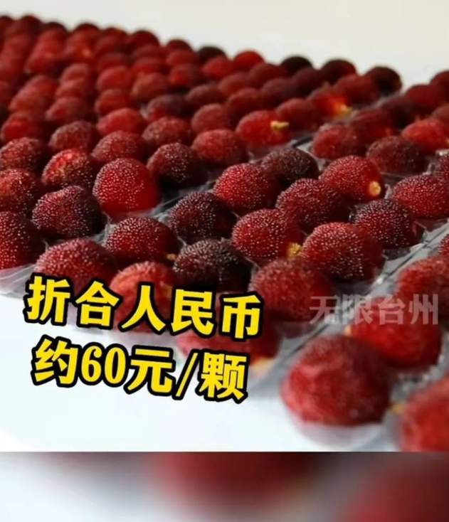当时那篇新闻里提到:浙江台州首批1000斤出口杨梅从仙居县发出,将空运到阿联酋迪拜。这批杨梅共40箱,价值约8万元;每箱30盒,每盒中有约15颗杨梅,单个约25克。“这批出口至迪拜商超的杨梅每颗售价为8至10美元,折合人民币约60元,是台州本地3.5元/颗开摘价的17倍。”