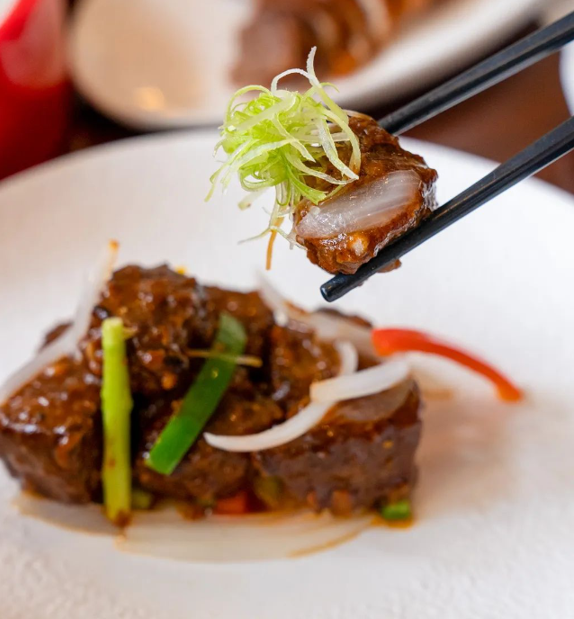 作为一家高级餐厅,牛肉基本都是和牛打底了。这道和牛采用先炖煮再爆炒的方式,采用浓郁的酱汁包裹充满油脂的和牛粒,简直是香到不行啊。