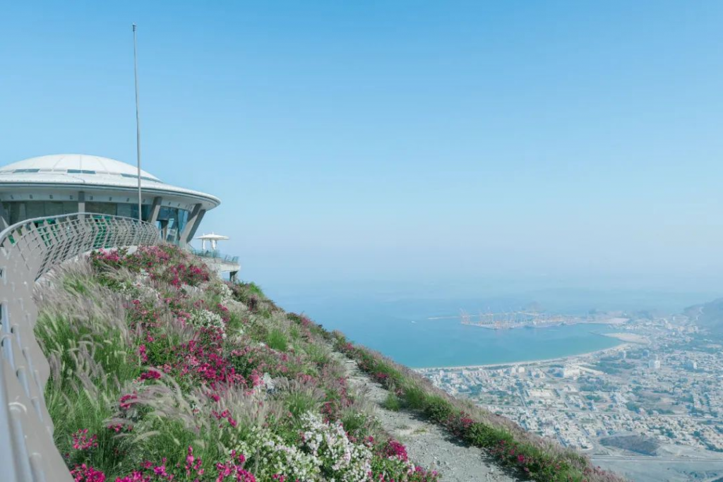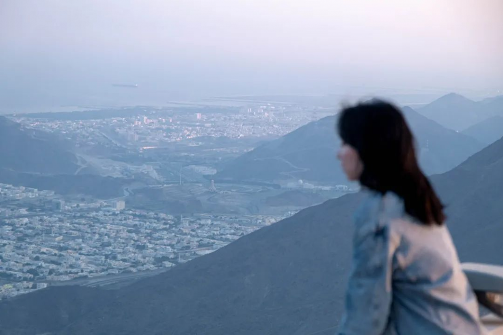 位于山顶的绝佳位置,在这里可以俯瞰整个沙迦东海岸美景,包括豪尔费坎海滩(Khor Fakkan)和阿曼湾的全景,海天一色美不胜收。山脚下一个个小房子沿着海边铺开,足以感受这个滨海小镇的独特魅力。同时,我们也能感受周遭重山层层叠叠那壮阔的山景,绝对让人豁然开朗。