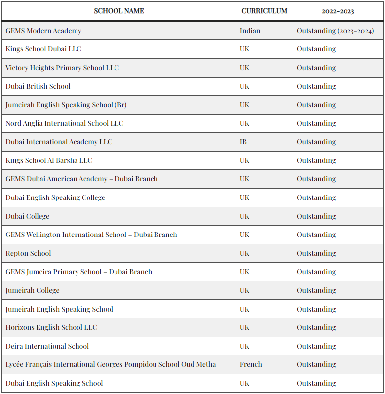 根据KHDA网站,下面是迪拜的“优秀”私立学校。