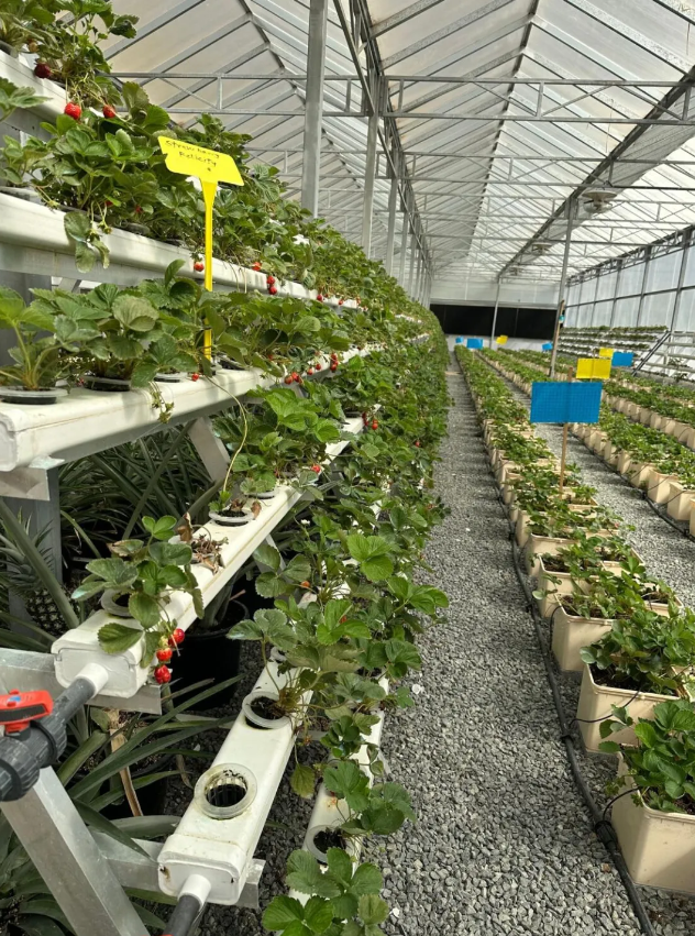 果园目前种植了4种类型的草莓,约有1.8万株幼苗在先进的水培系统下茁壮成长。