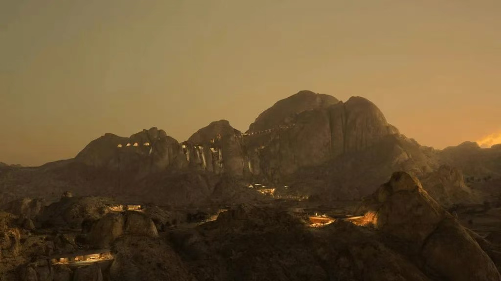 沙特其他知名高端酒店基本都在埃尔奥拉(AlUla)或利雅得,但Desert Rock Resort却藏于沙特红海地区乌姆卢日(Umluj)沙漠里的山谷中,是沙特开发红海旅游规划中的一个重点项目。