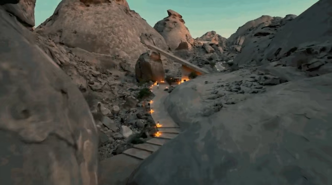 酒店有一座非常震撼的悬崖吊桥(恐高者慎去),站在吊桥上可以俯瞰整个酒店的风景,仿佛置身于《西部世界》、《沙丘》和《钢铁侠》峡谷基地的场景里。