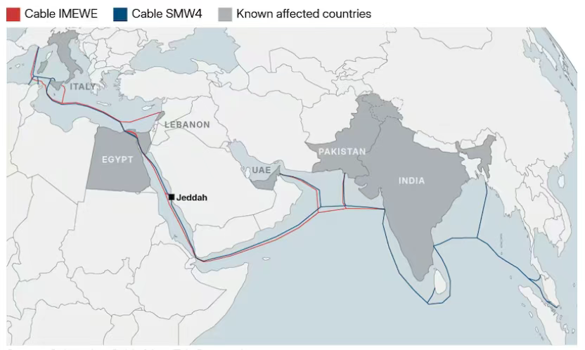 “这类事件并非首次发生——近年来,因电缆故障或断裂引发的类似断网事件屡有出现。每一次事件都在提醒我们,当全球数字基础设施过度依赖外部线路时,其脆弱性会有多高。”