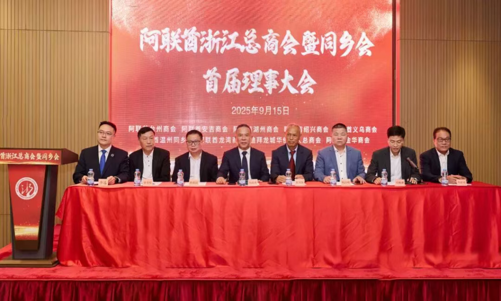 2025年9月15日,阿联酋浙江总商会暨同乡会首届理事大会在迪拜隆重举行。本次大会标志着在阿浙商与浙籍侨胞组织化、规范化发展迈出关键一步,为促进中阿经贸文化交流、凝聚浙商力量奠定了坚实基础。