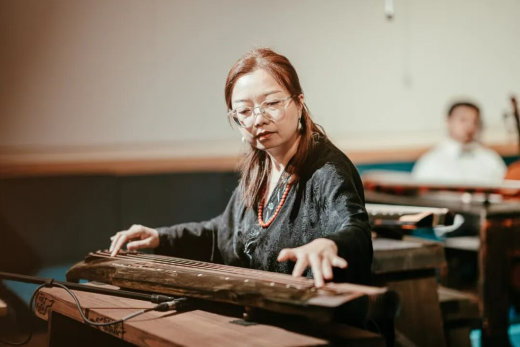 整场演出经过精心编排,既保留古琴艺术的古典神韵,又融入了国际化表达。四位小朋友古琴唱奏李白《春夜宴桃李园序》诗文,拉开雅集的序幕。董娟女士演绎的查阜西先生成名曲《潇湘水云》大气磅礴;《流水》则演绎了“高山流水遇知音”的永恒主题。琴歌《阳关三叠》以清越的琴音与吟诵声交织。