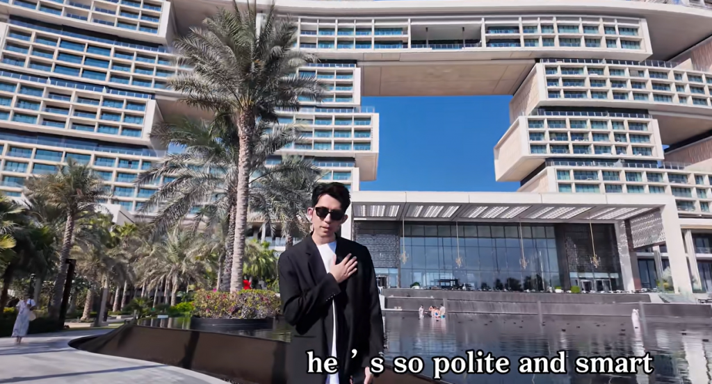 何潇骏,浙江宁波人,在迪拜已经生活了12年,目前主营业务是房产经纪人,同时也从事高端旅游的接待服务,接待过不少名人大咖,拥有一个名为“中东何老师”的个人自媒体账号,分享各种有关迪拜及沙特旅游的奢华体验和美食美景,小有名气。