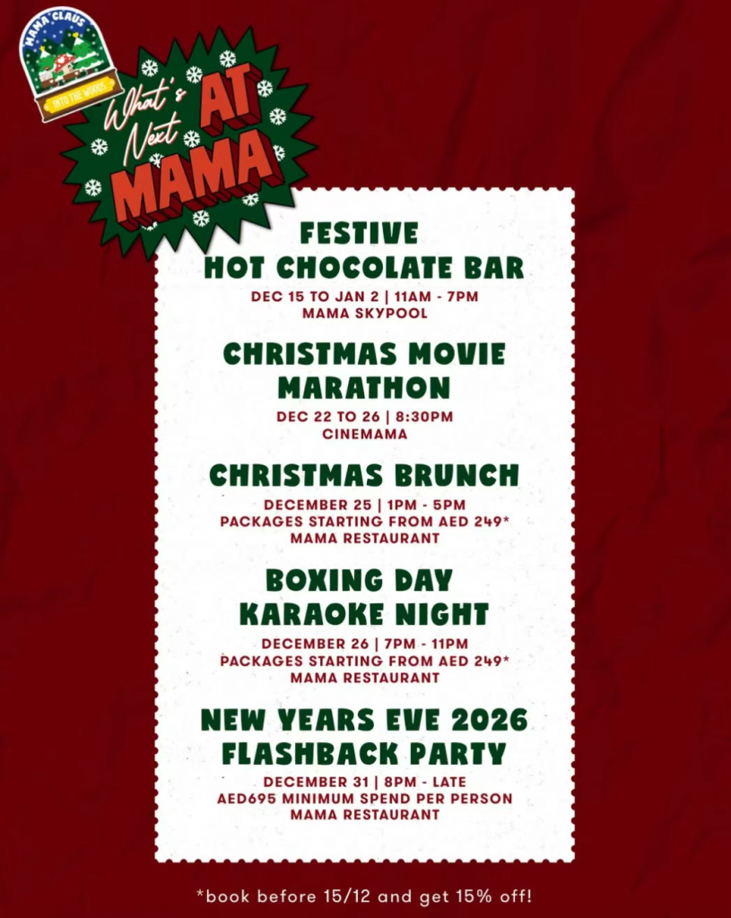 今年12月想寻找节日乐趣?迪拜的这些圣诞电影活动应有尽有 —— 从星空下的户外放映,到提供热巧克力和经典节日佳片的温馨室内场所,无论是家庭聚会、好友结伴,还是浪漫节日约会,都能让你在银幕前感受节日的魔法。