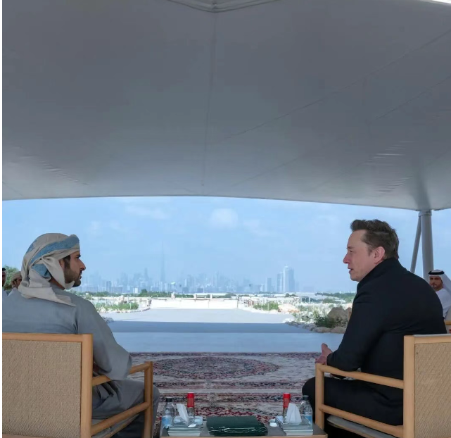谢赫・哈姆丹在迪拜亲自接待并驾车接送马斯克的照片,彰显了这座酋长国对与这位企业家旗下企业合作的重视。王储的此类私人层面互动,通常仅用于对迪拜未来具有战略意义的合作关系。