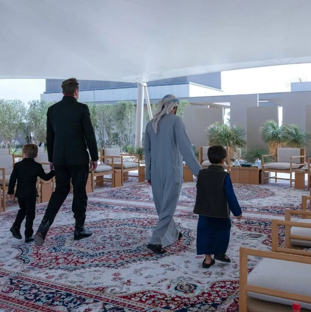 照片显示,谢赫・哈姆丹与马斯克坐在疑似私人飞机机舱的位置上;另有王储与马斯克握手、驾车接送他的画面;两人还被拍到牵着各自儿子的手,一同走进会客厅的背影。