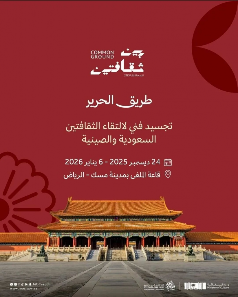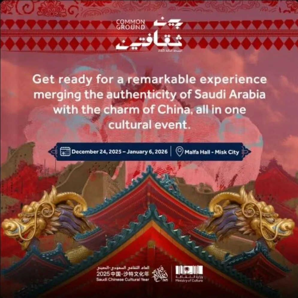 由中国文化和旅游部、沙特文化部合作举办的中沙文化市集(Common Ground)将于12月24日在利雅得盛大开幕。这将是2025中沙文化年的压轴大戏,绝对是年末最不容错过的文化体验!