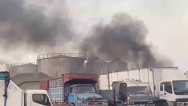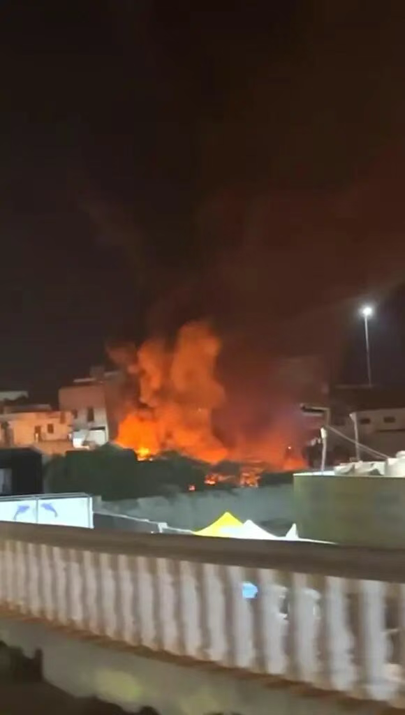 12月30日,在也门哈德拉毛省穆卡拉港,空袭引起大火(新华社)