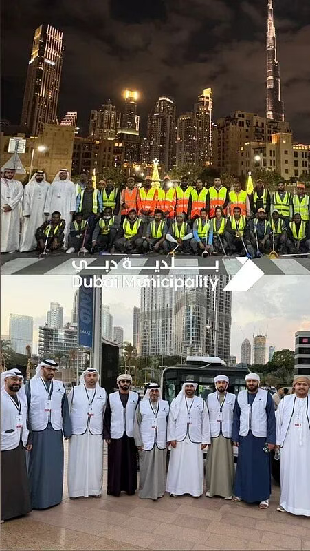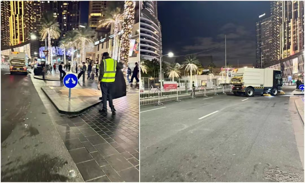 居民在社交媒体上分享的视频显示,即便在庆典进行期间,身着制服的清洁工仍在清扫街道、收集垃圾。迪拜市政府官方账号发布的照片则凸显了此次行动的规模。