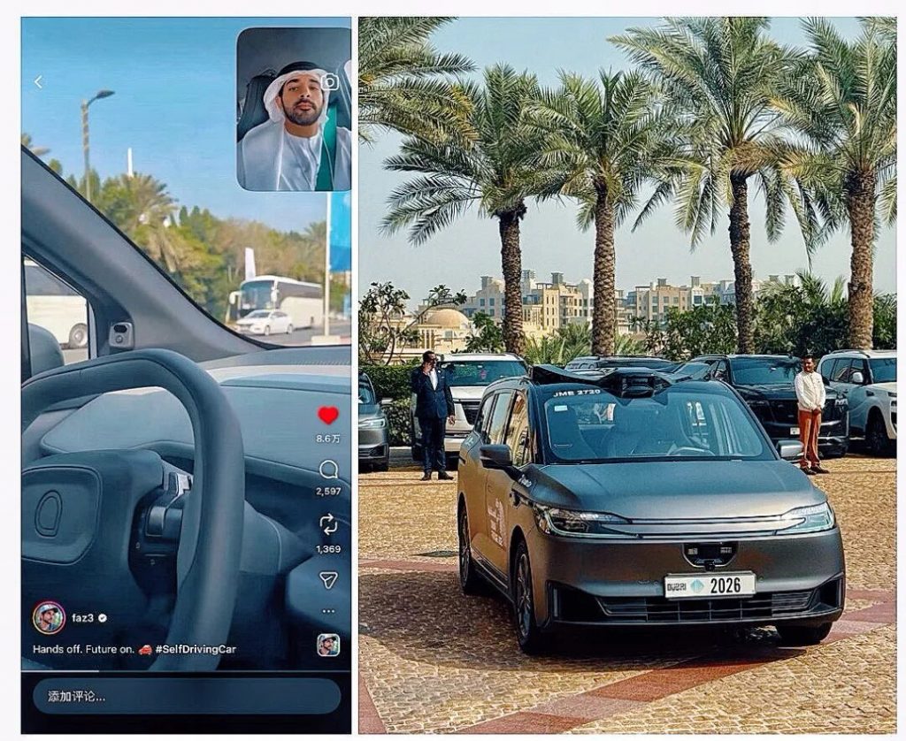 2月5日,迪拜王储、阿联酋副总理兼国防部长谢赫·哈姆丹亲自乘坐百度萝卜快跑的自动驾驶出租车,前往世界政府峰会举办地参加闭幕活动。