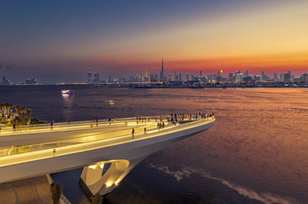 迪拜云溪港滨水步道(Dubai Creek Boardwalk)是欣赏日落漫步的好去处。远处可眺望哈利法塔天际线,还能观赏灯光倒映在Al Jaddaf运河的景致。步道设有儿童游乐区、沿街餐厅,还有观景台可尽览美景。