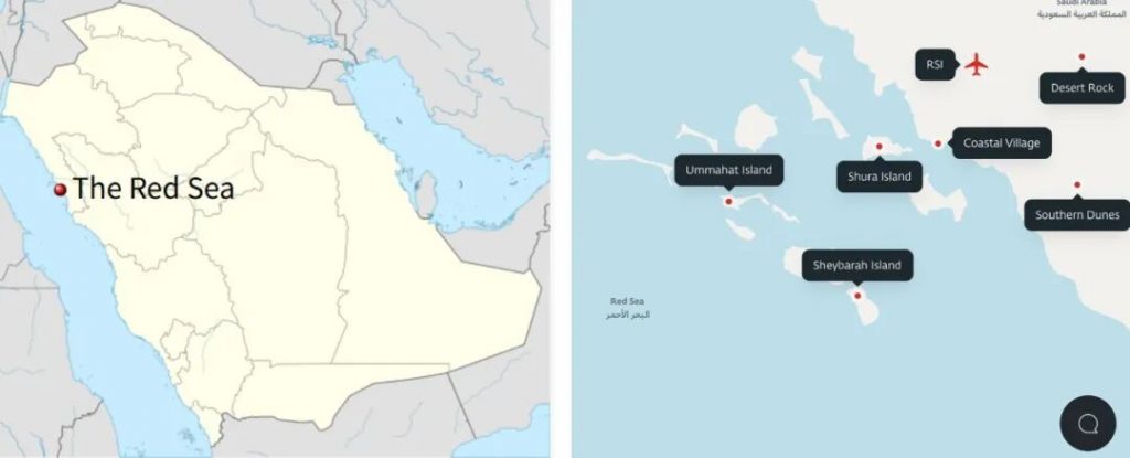 红海项目是沙特“2030愿景”里的一个超大再生型旅游项目,由红海全球公司开发,计划在22个岛屿和6个内陆区域建50家酒店、超过1000套住宅。目前已经部分开放,预计2030年全面竣工。