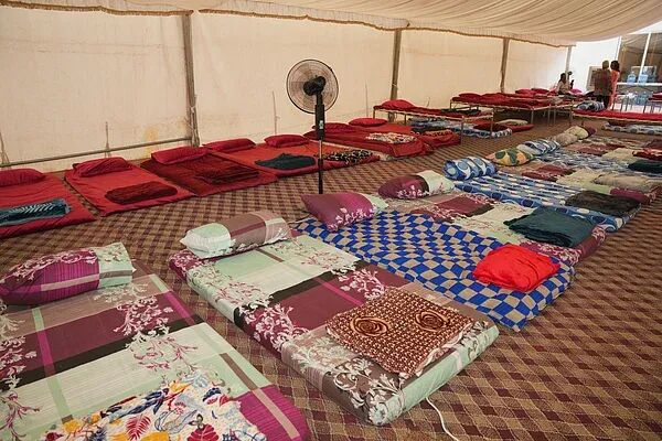 在阿治曼市Helio 2区一座静谧的农庄里,眼前的景象更像是一场大型家庭聚会,而非临时避难所。宽敞的大厅与帐篷里摆满了床垫,来自印度各地的人们一同在厨房烹饪,有人清晨练习瑜伽,有人则在傍晚围坐观看电影或板球比赛。