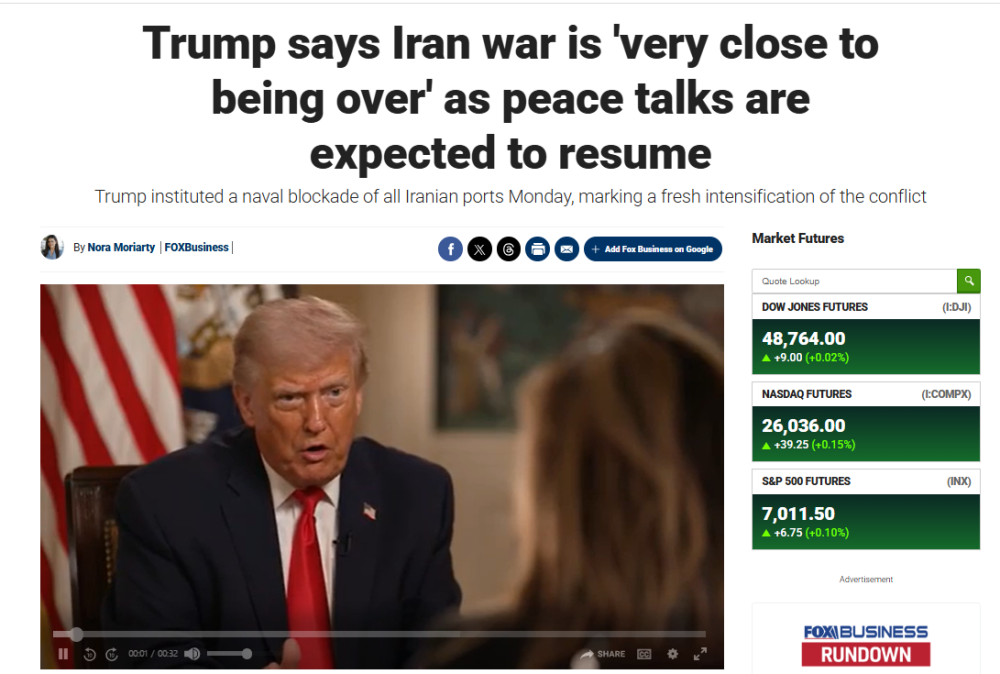 美国总统特朗普14日在接受美国媒体采访时称,伊朗战事已“接近结束”。
