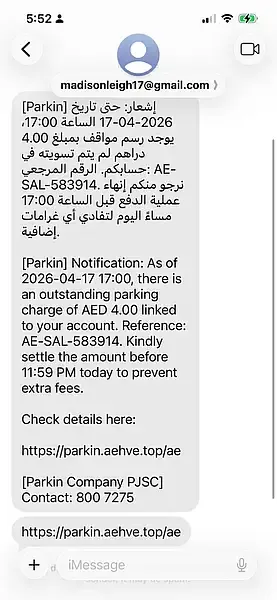 近期,迪拜最大的付费停车公司Parkin提醒居民,应警惕虚假的“停车费催缴短信”,请勿点击陌生链接,务必通过官方渠道核实所有信息。