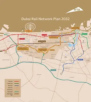金线将在Business Bay、Jumeirah Golf Estates与红线连接起来,并在Al Ghubaiba与绿线相连。
