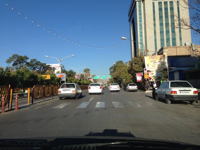 设拉子的交通继承了伊朗各大城市的主要特色–混乱。虽然可以大致看出交通秩序,但总体来讲还是相当凌乱的,尤其是有些十字路口处没有安放红绿灯。于是四面八方来的车都只能见缝插针,在一片惊险中穿越而过,很容易就会堵成一团。在这种混乱中,设拉子的司机倒是蛮淡定,似乎已经习以为常。而街上也看不到足够的交通警察对这种混乱的局面加以控制(或许是财政养不起?)。总之在设拉子行走,即使自己有驾照也要选择租车或包车旅行。这个城市的交通状况不足以给一个驾驶技术一般的人足够的自信。