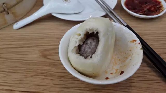 鼎泰丰的包子,羊肉馅,皮很有韧性,内陷也是一个非常扎实饱满的大肉丸,有羊肉的鲜香。总体来说是一款好包子,若汤汁再能丰富一些就更加美味。这或许也是无法使用猪肉所带来的遗憾之一。