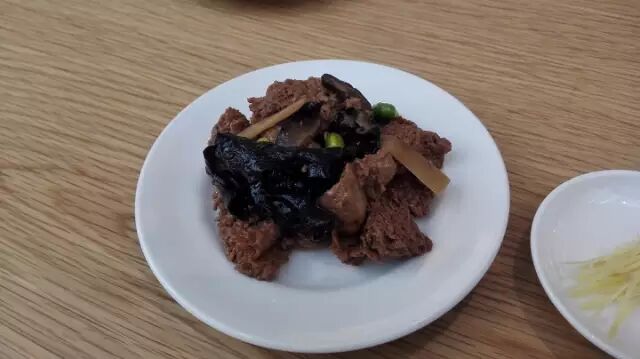 小菜推荐一碟烤麸,吸饱了酱汁的烤麸味道浓郁,口感极佳,味道像是南方的卤豆腐干,我很中意这种味道。