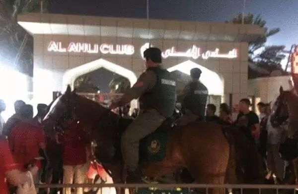 而在场外,恒大球迷也遭到了当地有关部门的刁难。据众多现场记者透露,阿赫利主场以看台已满为理由,不少持票的中国球迷由于无法在比赛开始后进入客队球迷区,因此在入口处与迪拜警方发生了对峙,而对方甚至出动了骑警来驱散球迷,一些中国球迷甚至遭到了警察的殴打。央视记者刘思远也对此事予以了证实,他在微博中说,“十几名中国球迷被阿联酋警察打了。现在恒大俱乐部正在和警方交涉,已经投诉到亚足联”。