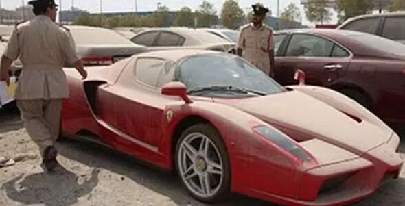 据悉,一辆法拉利恩佐被扣在迪拜警局停车场已有六个多年头,布满了灰尘,迪拜警局还没有出售这辆车的打算。一则阿拉伯语报告提到一匿名美国人最近为这辆车出价六百万迪拉姆,但迪拜警局无法出售,因为这辆车不仅被国际刑警组织盯上,它也是阿联酋目前正在处理的一起法律纠纷。