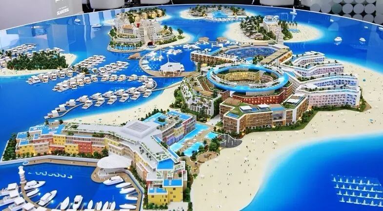 “漂浮海马”项目属于迪拜世界岛上的大型房地产项目–欧洲之心(The Heart of Europe)的一部分。”欧洲之心”是由 6座小岛组成的群岛。完整版的”欧洲之心”将把欧洲风情搬到世界岛,成为集酒店、娱乐、住宿为一体的综合度假中心。”欧洲之心”的最牛逼之处是他们宣称可以在岛上通过控制室外温度而实施户外人工降雪,要知道夏季迪拜的户外温度高达50摄氏度啊,据说这种黑科技已经被德国的科学家成功展示,无论你信不信,总之回到主题,”漂浮海马”是其项目进程中的桥头堡。