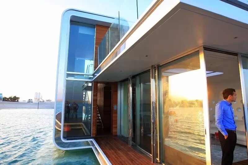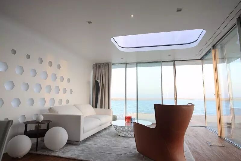 这个项目在去年3月于迪拜游艇展首次亮相,立刻引起了海内外的关注。然而如同无数其他设计绝伦却仅存活在图纸上的迪拜房产项目,这个科幻感很强的”漂浮海马”也一度被怀疑是否能如实完工。但就在最近,世界上第一个”漂浮海马”别墅已经顺利完工,这套样板房已经妥妥地”漂浮”于迪拜世界岛的海中。