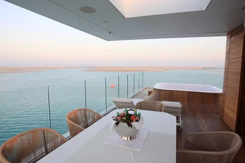 进入世界岛的方式就很壕,我们被安排乘坐一搜豪华游艇驶向目的地。在旅途中,还能享受迪拜的绝妙海景,在迪拜想出海观光,每小时几乎要花费小1000迪拉姆,但如果是去参观世界岛,这船票就算是白送了。