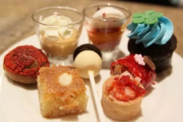 这个早午餐是无限量爱吃什么拿什么的自助形式,分成了四片区域,最吸引小朋友的莫过于甜品台,装饰上可谓下足了功夫,点心种类丰富且精致无比,纸杯蛋糕,马卡龙,甜筒等应有尽有,即使像我一样不爱甜食的人也驻足不前挑花了眼,于是出现了跟一堆小朋友抢吃的的尴尬局面。