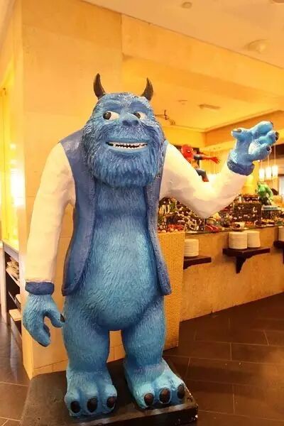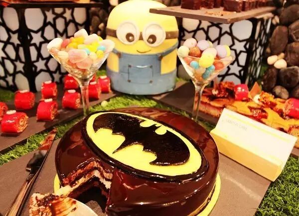 还未步入餐厅就已被嬉戏声包围,闻声而往,来自《怪物公司》的大毛怪已站在餐厅门口say hello,靠近门口的甜品区上蜘蛛侠,小黄人等各种卡通人物摆放其中,每台餐桌上都布置好了气球及各种小玩具,不禁怀疑自己是到了一个儿童乐园而非餐厅。