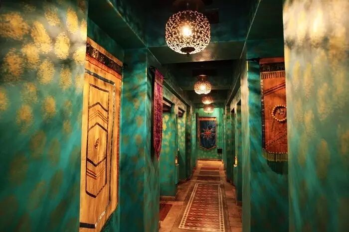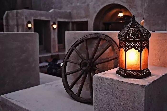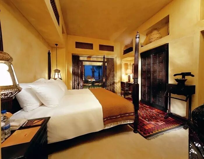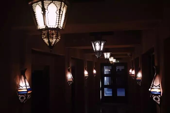 一座沙漠酒店的灵魂一定是属于阿拉伯的,被在历史长河孕育下的文化包裹。在并不算宏伟的大门背后,隐藏的是一个巨型的阿拉伯城堡,所到之处无不伴随着浓郁的阿拉伯风情,在酒店大厅的廊道里,阿拉伯式的灯具便勾勒出独特的光影风情,我已经能感到灯光里所释放的一丝迷离。