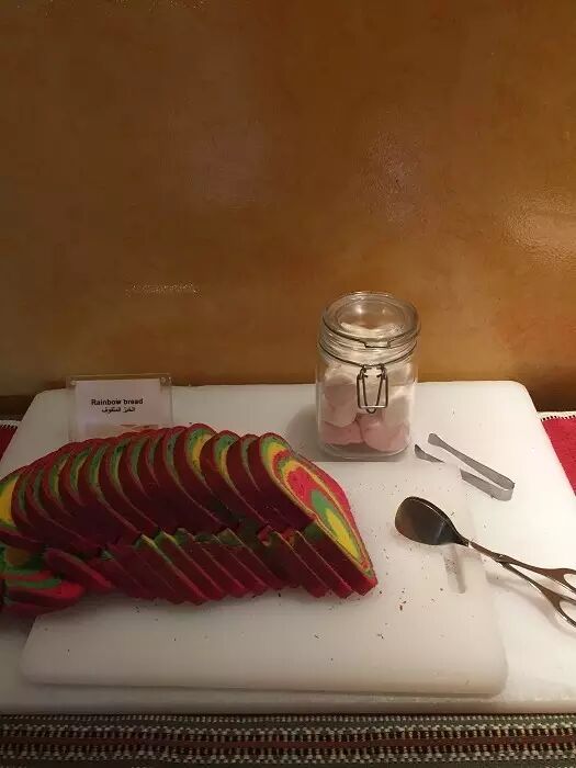 每天的早晨,可以继续昨夜的闲步游历,再度让自己迷失于这伟大的建筑中,顺便寻访酒店的早餐去处。Bab Al Shams早餐既饱含阿拉伯特色,又照顾来自不同国家客人的口味。你可以发现相当特别的彩虹面包,还有多达9种的来自阿拉伯不同地区的上层蜂蜜。在这里还发现了适合华人的白粥,居然还有葱花和肉松的搭配,令人倍感亲切。