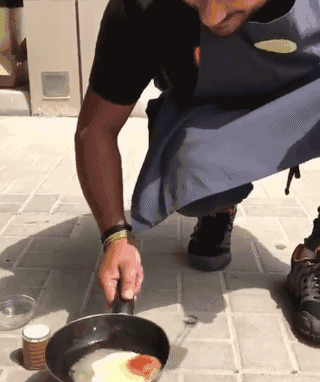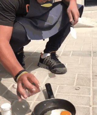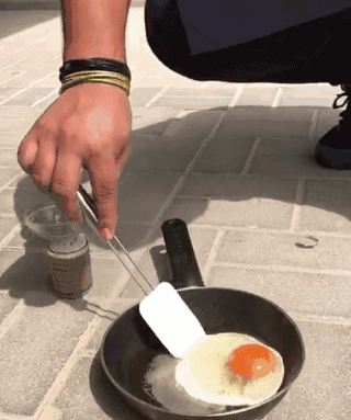 其实在户外煎蛋并不是一件新鲜事——加州死亡谷的公园护林员(地球上最热的地方之一)在他们发现了散落在该地区的蛋黄后,不得张贴告示告诉人们不要在地上煎鸡蛋……