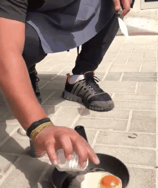 视频里一个男子真的在迪拜的人行道上煎鸡蛋