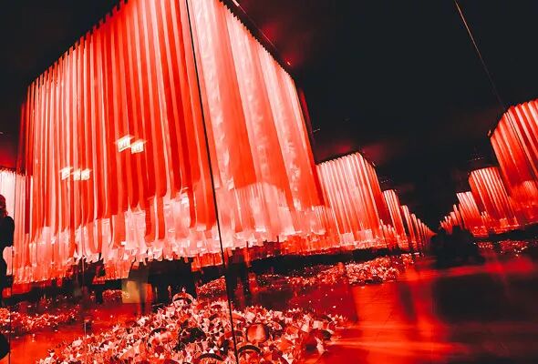 一个由镜子打造的VIP区,投射这红色的昏暗灯光,装饰着前卫的艺术装置,与其说是俱乐部,更像是时尚展览的一部分。
