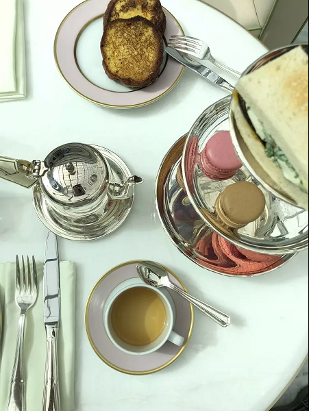 下午茶不可或缺的部分就是茶和咖啡,而我个人偏爱Laduree的茶。银质的茶壶充满细节雕花,而粉嫩的茶具器皿可以说让人少女心爆棚。而选用顶级的茶泡出完美的色泽,顷刻间化身为优雅的贵妇王爵。